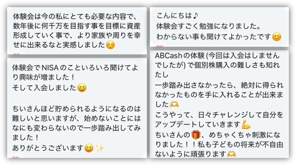 ここからは、私が実際にABCashの無料体験を受けた感想をお伝えするね🎙️