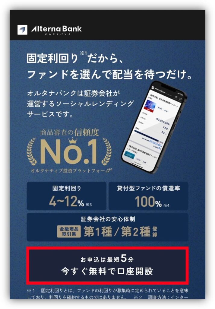 まずは下のボタンから、オルタナバンクの公式サイトにアクセスしてね🙏