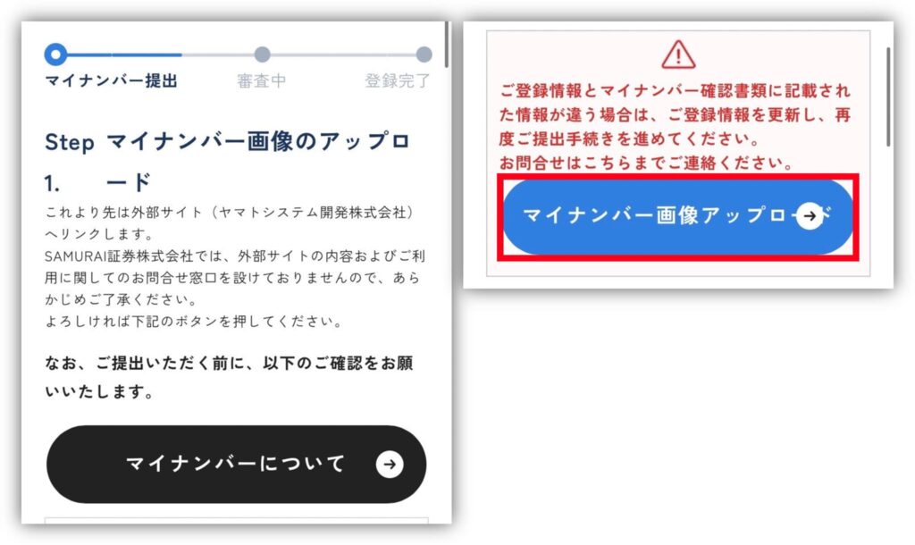 「マイナンバー画像アップロード」をタップしてね。