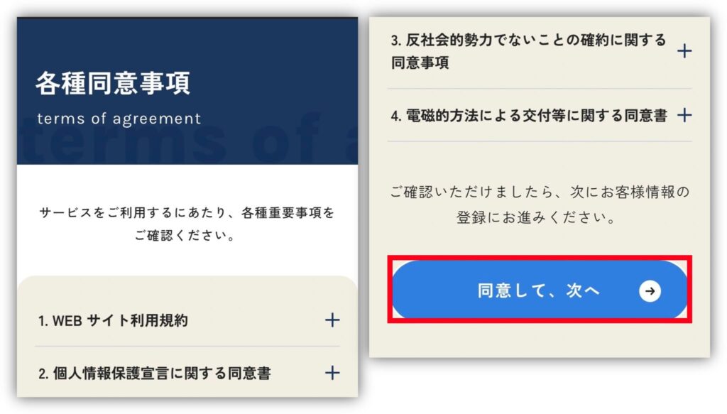 STEP②各種同意事項の確認
