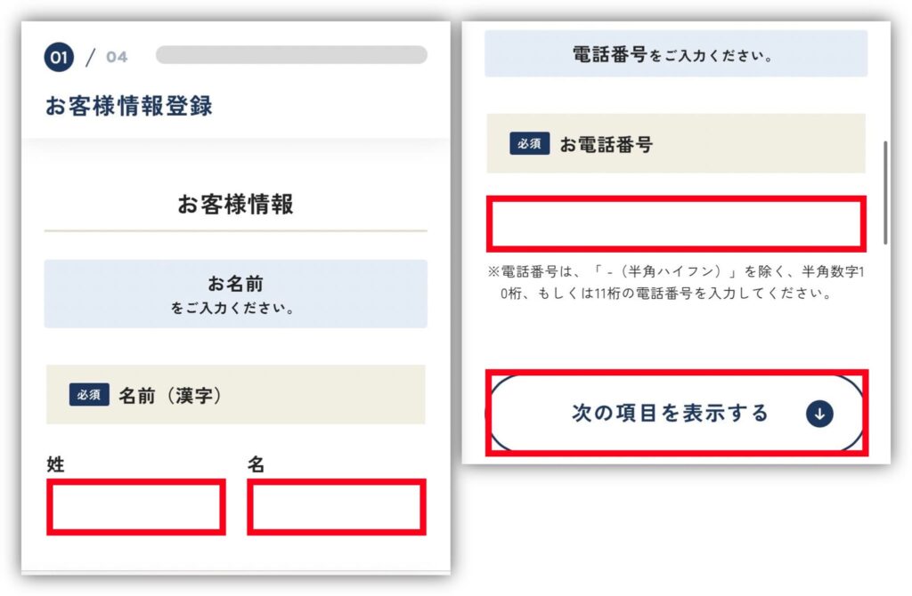STEP③お客様情報の登録