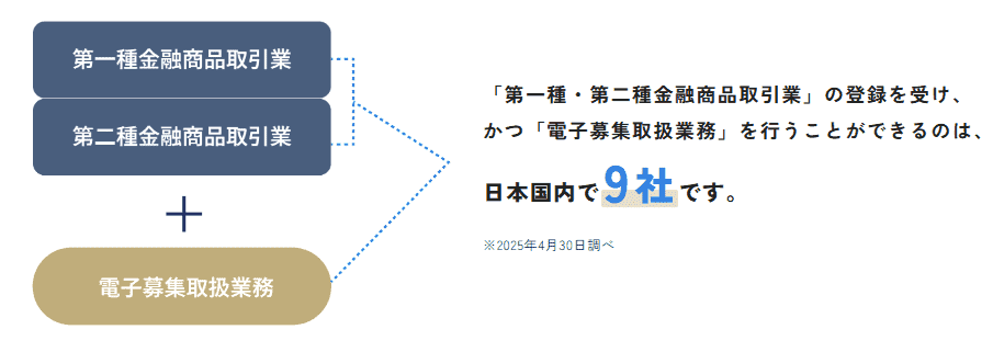 さらに、オルタナバンクは第一種・第二種金融商品取引業の登録だけでなく「電子募集取扱業務」ができるのもポイント✨