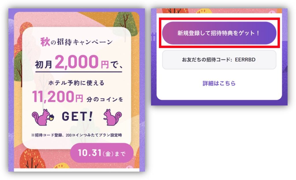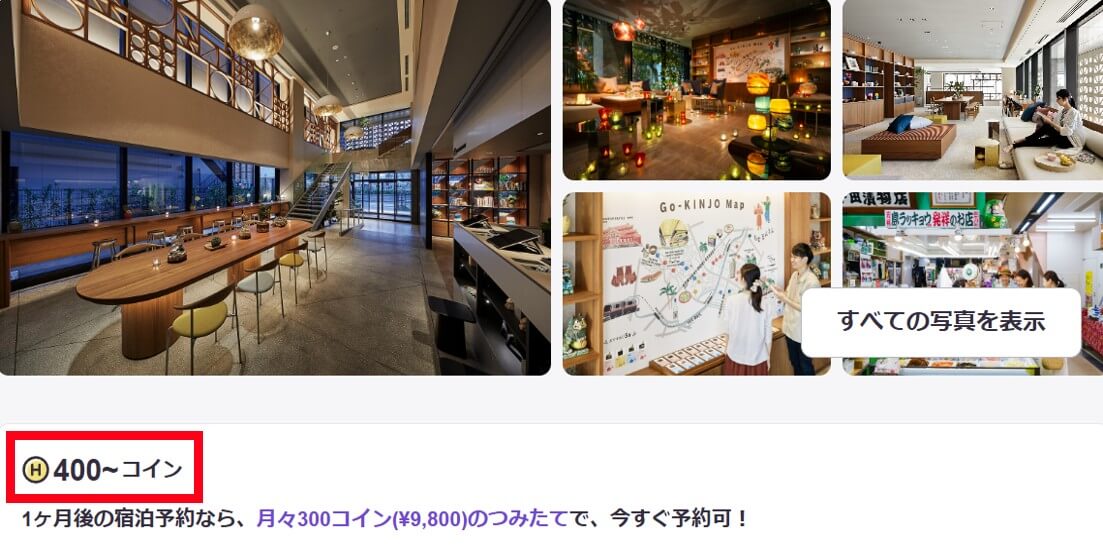 つまりキャンペーンの内容によっては、キャンペーンでオトクに手に入れたコインだけで泊まれるから、入会した月からホテルを予約できるよ🤭