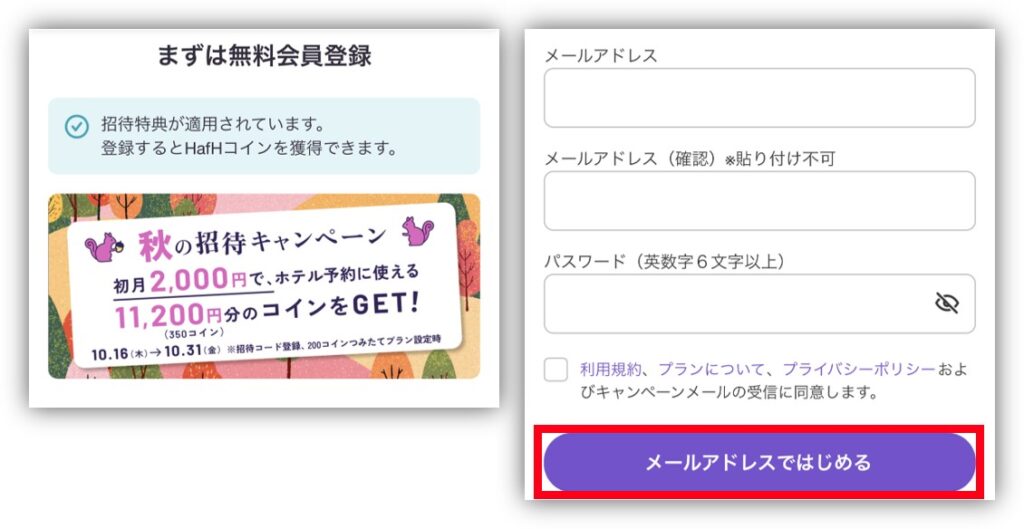 最後に、招待コードを使ってHafHにオトクに登録する方法を3STEPで解説するよ!