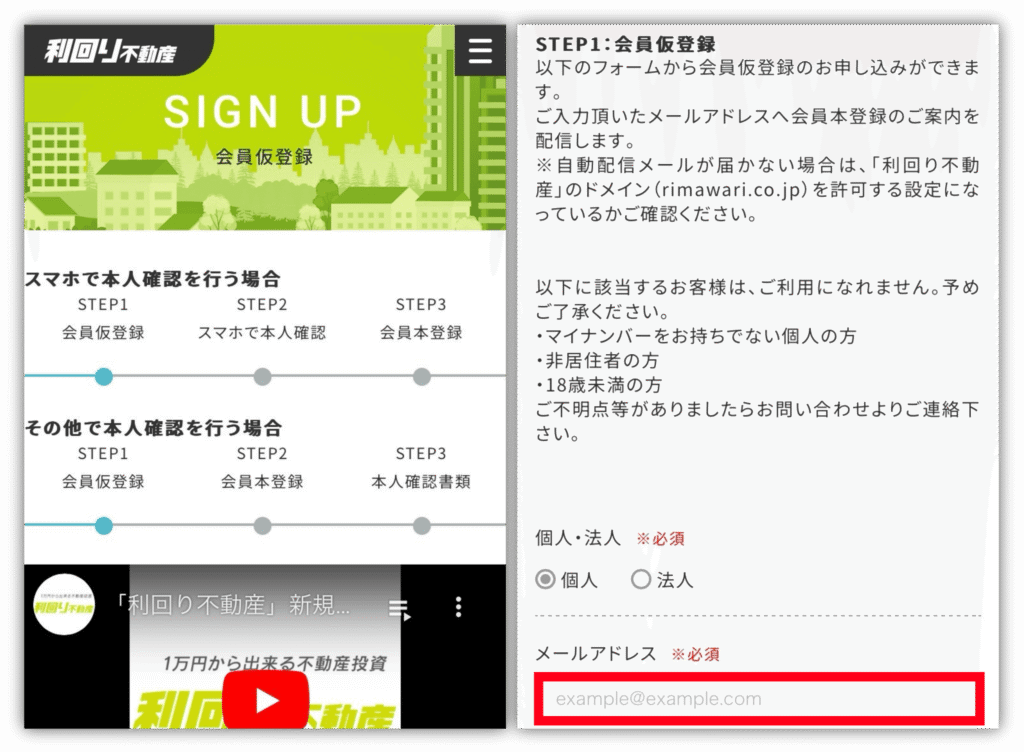 STEP①会員仮登録