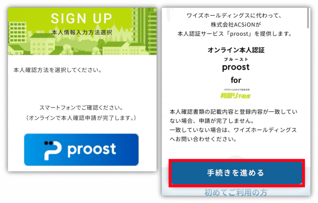 次に、「手続きを進める」をタップして、本人確認書類の提出をしていくよ✊
