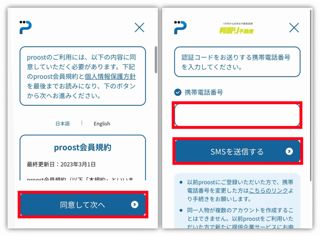 規約を確認後、「同意して次へ」をタップ!