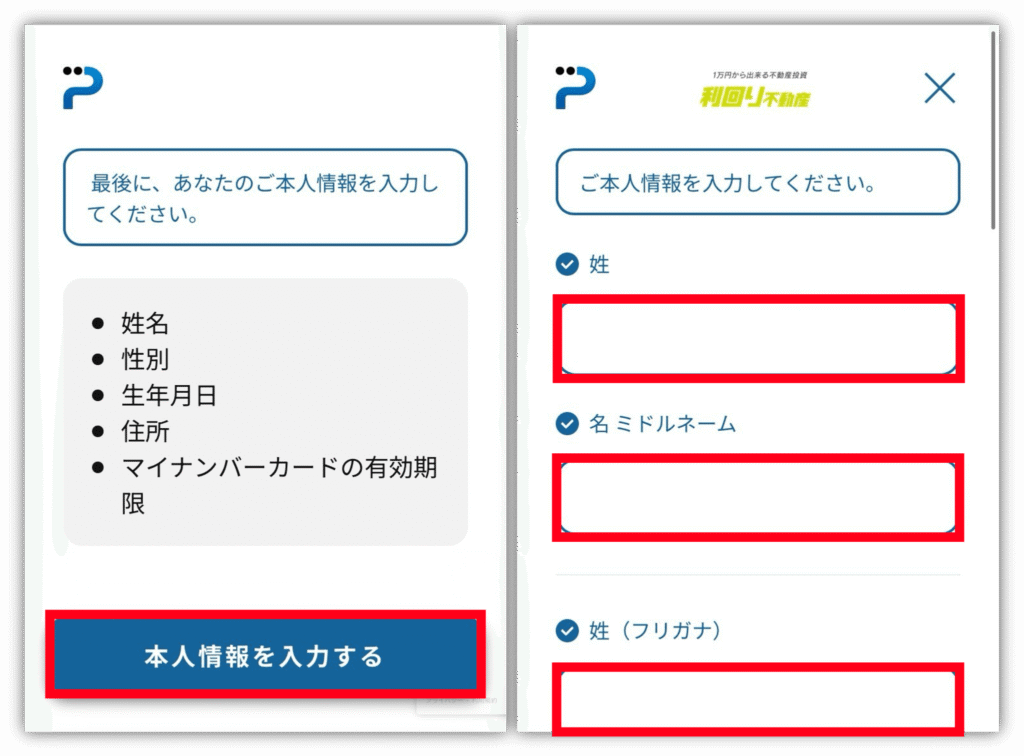 撮影が終わったら、「本人情報を入力する」をタップして、本人情報を入力していくよ✊