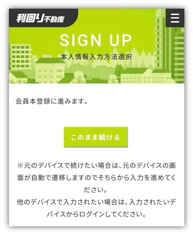 「このまま続ける」をタップして、会員本登録に進んでね!